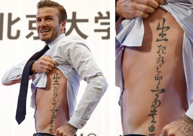 一些名人身上也有漢字刺青,比如貝克漢的「生死乃命,富貴由天」,不僅字體漂亮,還很有內涵。