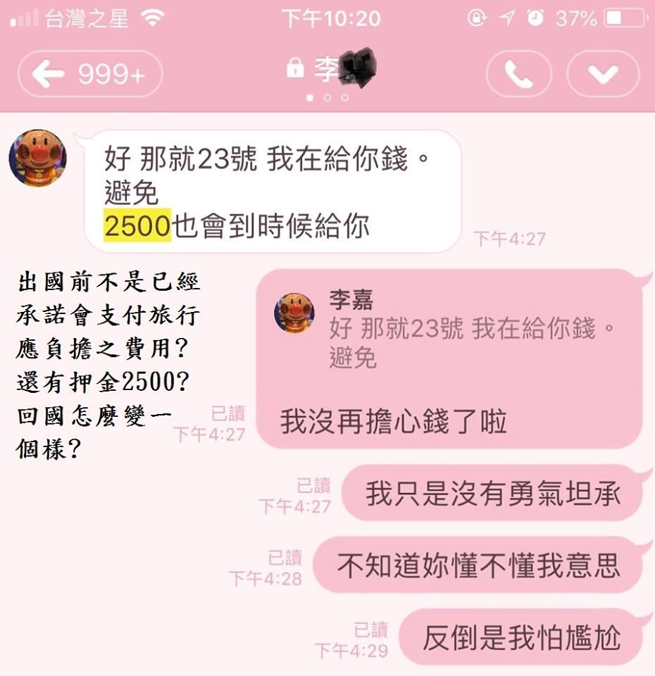 你就是一點都沒有想付錢的意思,出國前都好好的,出國後另一個態度,反差之大真是令我「刮目相看」,為什麼不說出來讓大家知道知道呢?