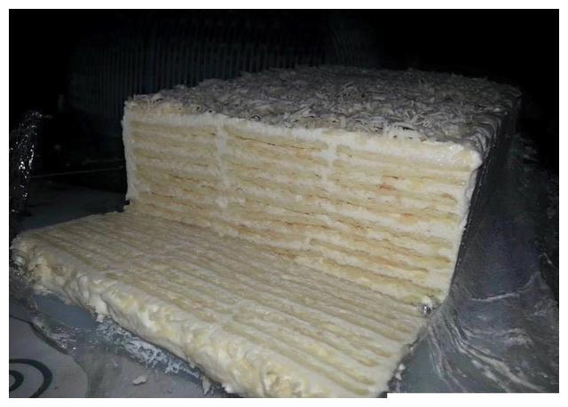 10、烤好的蛋糕,放冰箱冷藏4個小時以後,脫模並切塊食用。