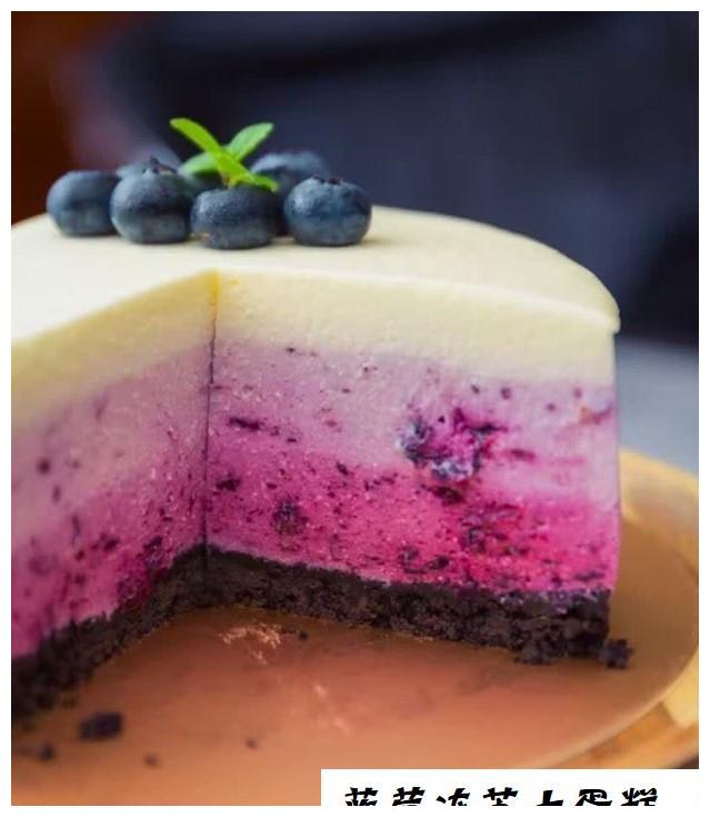 7. 從冰箱取出冷藏好的模具,先倒入深紫色的起司糊,入冰箱冷凍層25分鐘至凝固。然後,取出倒入淺紫色起司糊再冷凍25分鐘。最後取出倒入最後一層原味起司糊,放冰箱冷藏5小時以上至徹底凝固。