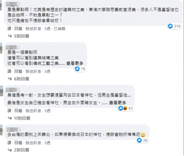 「廟宇是一種文化古蹟,就像出國也會去看教堂一樣」