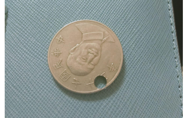 回家後才發現找零的硬幣中,其中一枚10元上方,竟有一個整齊的圓孔,令他十分煩惱。