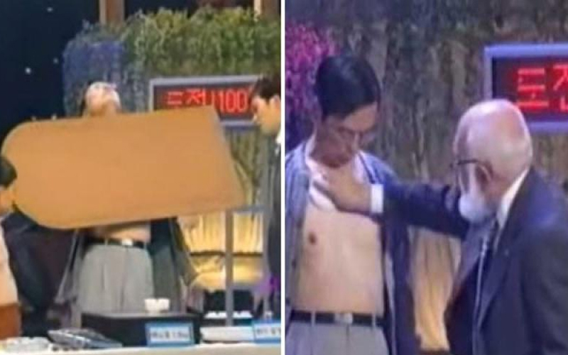 就當觀眾們還在讚嘆林先生的特異功能時,詹姆士就要求林先生在身上擦上一層爽身粉。