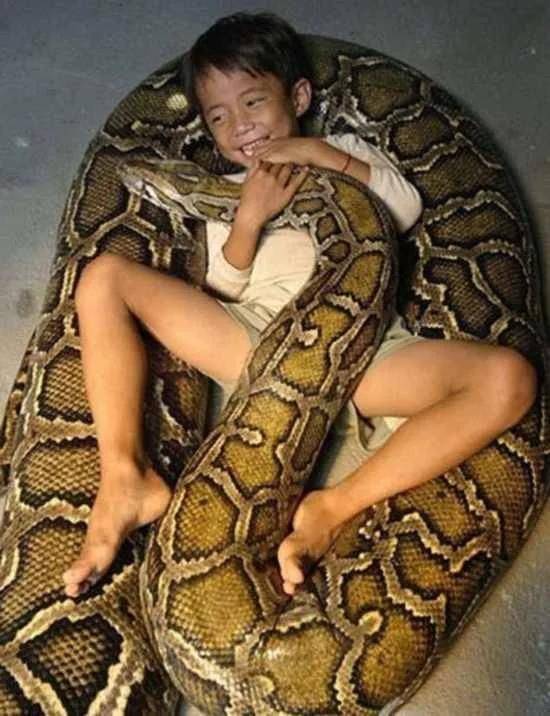 據外媒報道,這位泰國的父親給六歲的兒子買了一個蟒蛇當寵物玩具。小男孩叫巴斯拉·撒里斯,這條蟒蛇長達7米,重約260斤,足足是小男孩的好幾倍。這個蟒蛇是兒子出生不久他父親僥倖得來的,跟著小男孩一起長大,蟒蛇跟小男孩兒關係特別好,天天在一起。睡覺也是。
