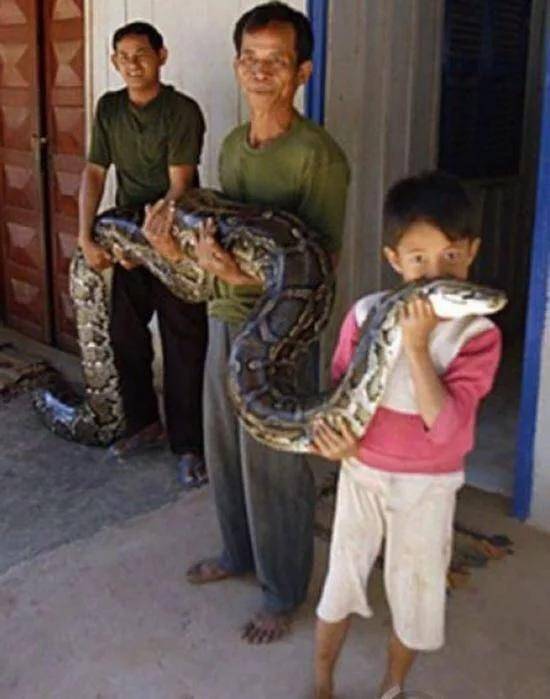 無獨有偶國外的一個家庭就把這種體長5、6米的蟒蛇給孩子當寵物。