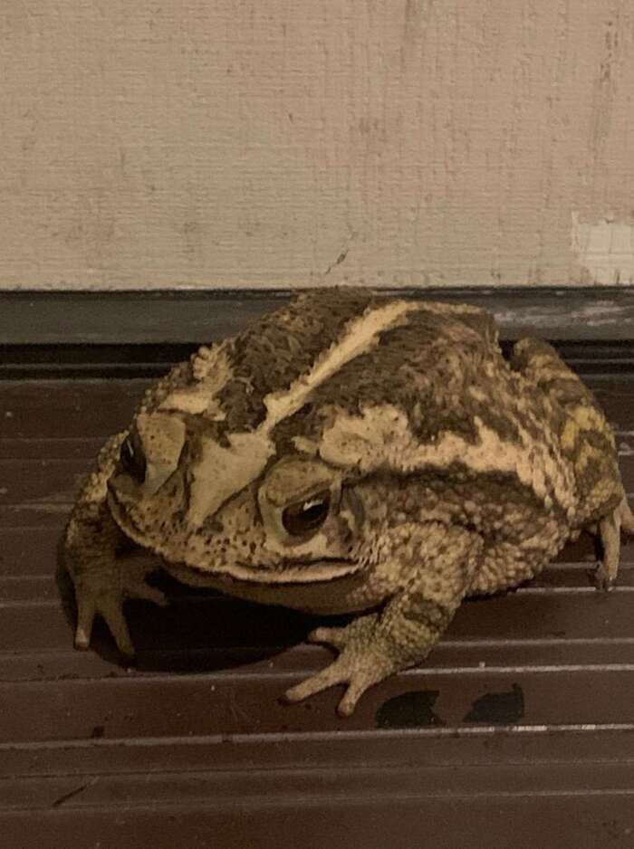 這隻蟾蜍因為第一晚過得很享受,於是決定成為永久居民。從那時候開始,每天太陽落山後,牠就會在前陽台吃昆蟲跳來跳去。後來牠也得到了身分證,名字叫做:蟾蜍賈巴(Jabba the Toad)。