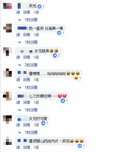 這則貼文吸引了超過2000個網友按讚,大家紛紛毫不留情的狂笑原PO:「還嘿嘿……哈哈哈哈哈」、「這情緒落差,笑死」、「女兒的表情好像是在嘲笑你」、「我一直笑 白高興一場」,另外也有網友給出實用的建議:「剪兩個洞,老婆一樣可以使用喔XD」、「自己買給老婆比較快」