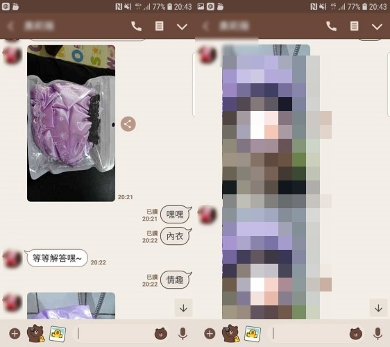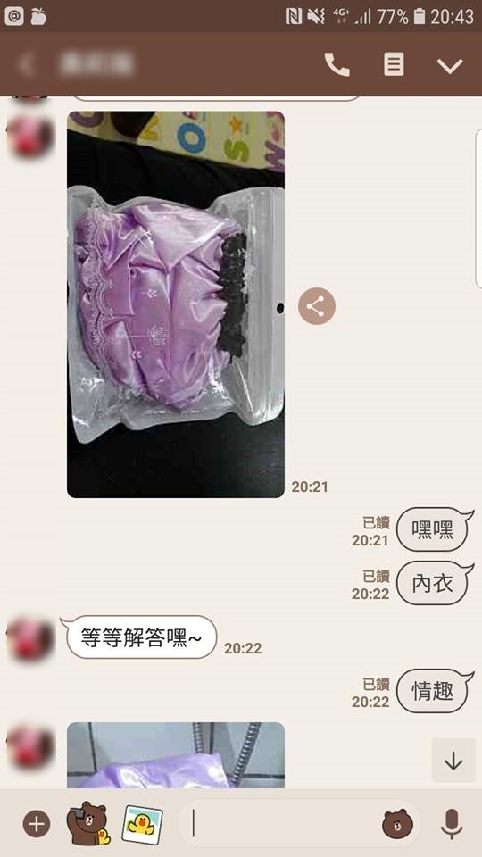 某天老婆傳了一張照片給他,畫面中是一小塊裝在透明夾鏈袋紫色緞面的衣物,邊邊還點綴著黑色蕾絲,雖然老婆沒有做出任何解釋,但看起來就令人產生無限遐想啊~原PO立刻起了邪惡的念頭,暗自竊喜沒想到老婆也會買這個阿!真是小淘氣!