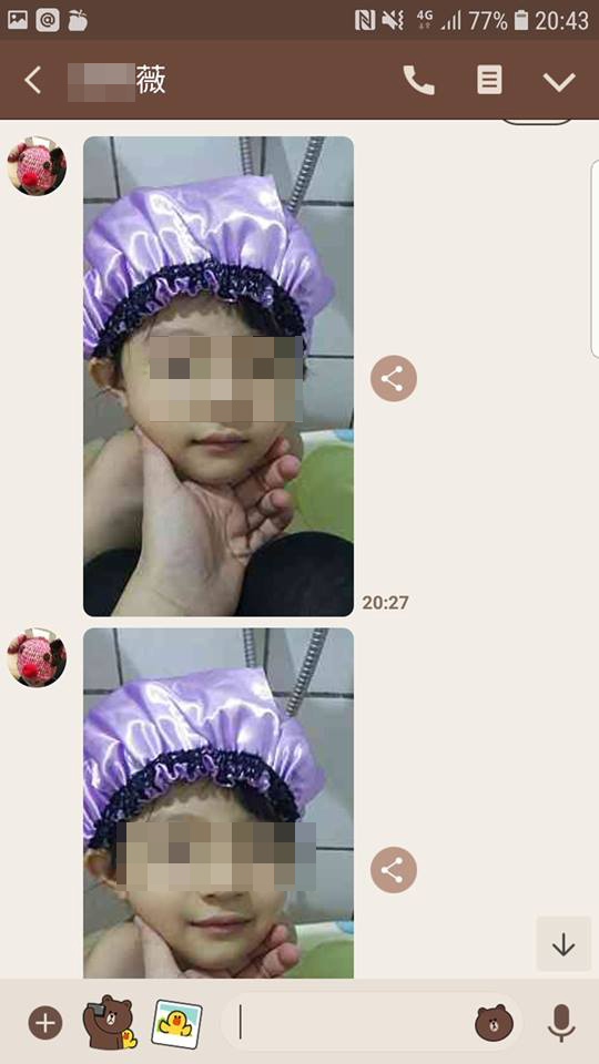 原來這件讓他白開心的紫色布料,其實是老婆買給女兒的浴帽啦XD