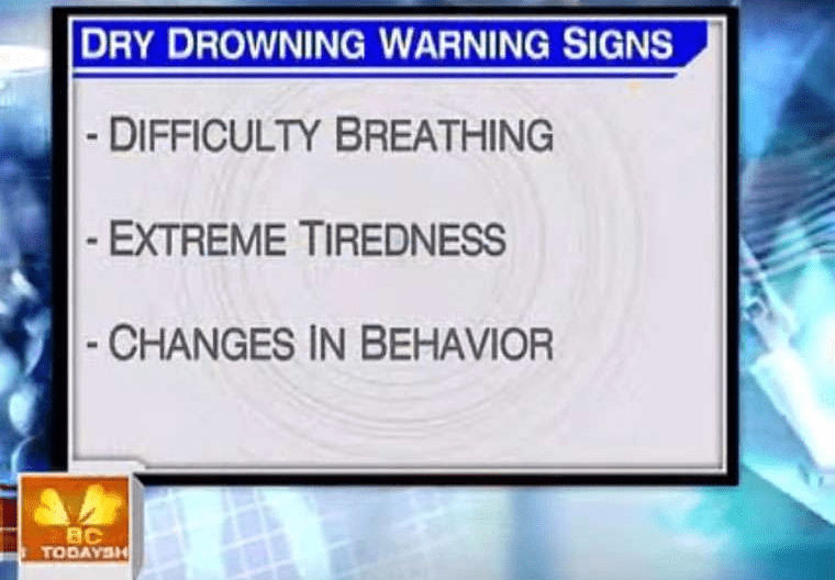 醫護人員表示,乾性淹溺的發生機率很小,但還是有這種案例,而消防隊隊長Bob則表示,以美國為例,這種情況發生的機率大約為10到15%,但千萬別認為不可能發生在自己或孩子們身上,應多多關注孩子們游泳後的情況。