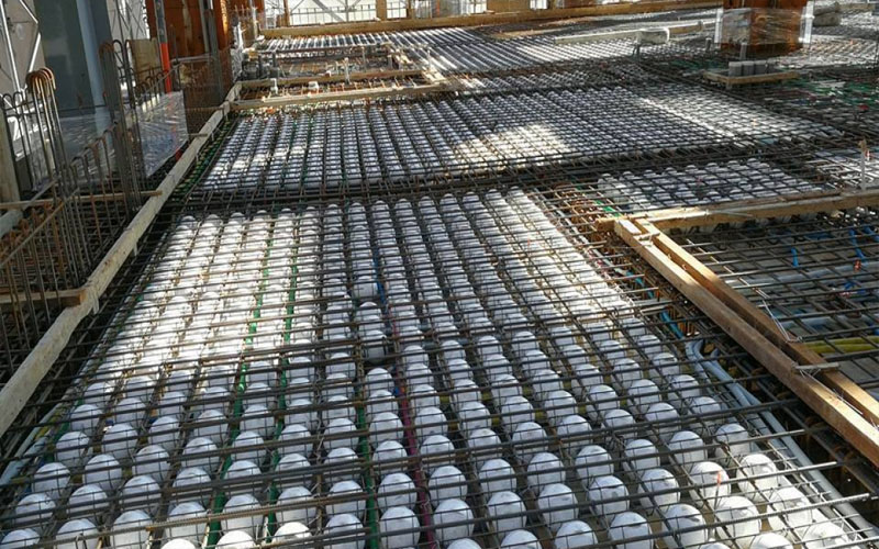 其實塞保麗龍球是一種環保工法,比起以往傳統的灌漿方式,這類工法有減輕重量、隔音隔熱及防火等優點,所以價格也高上許多。