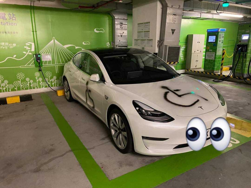 原PO在臉書社團分享一張照片,可以看到這台特斯拉疑似被人誤認為停在「身障車位」,直接大膽的動用 私 刑,直接在引擎蓋上面用黑色噴漆,噴上了一個大大的「身 障 車位」標誌,讓路過的人都不知道發生什麼事情了。