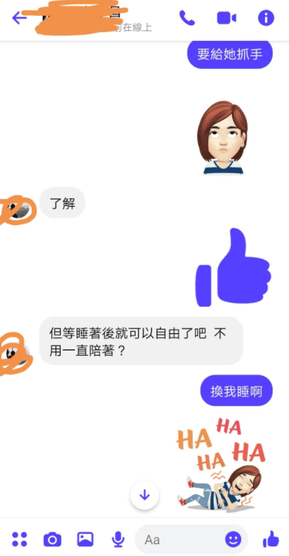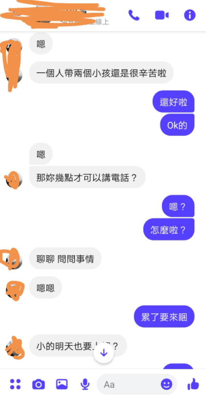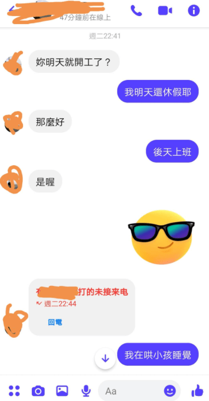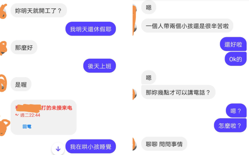 我沒接,說在哄小孩睡,就文字一路聊到12點多一些
