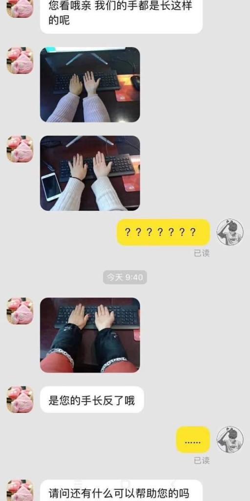 何先生在微博上分享了照片之後讓不少網友笑翻,大家紛紛表示:「原來我的手也長相反了……媽~~~」、「笑到差點岔氣」、「好白爛的客服!!」、「原來是手掌反了啊~長姿勢了!」