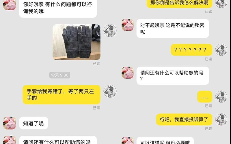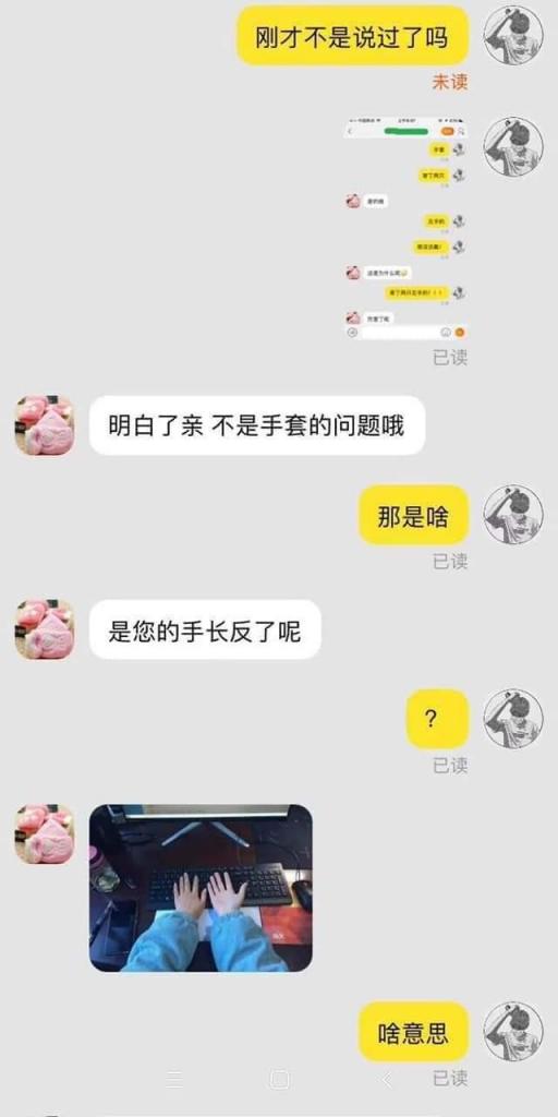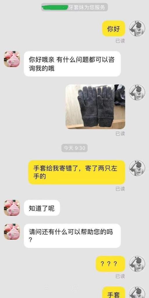 但何先生也知道雙十一期間難免會出錯,所以他也沒有多加為難,只是找了客服表示想更換成一雙正常的手套。