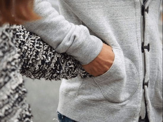 把手伸竟了褲子口袋裡