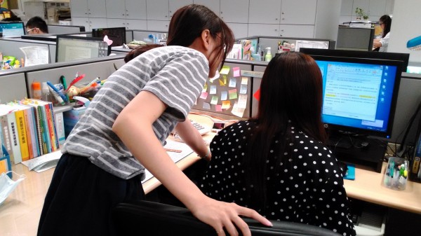 在進入公司後的半年我交了一個男朋友,也就是我現在的老公,他也是跟我們倆同一個公司的。