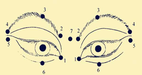 6、適時的給予眼部周圍的肌肉一下按摩,跟著下面的圖從1移動到6,使用中指和食指按壓。當你在進行這些動作時,應該感覺到適當的壓力,可是絕對不會讓你感覺疼痛。