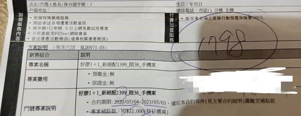 原PO表示外婆是快80歲老人,因為手機泡水又耐不住性子,因此獨自前往門市詢問搭配手機門號申辦方案,被推薦了「月租1798元的1+1門號」方案,搭配的手機是三星A71智慧型手機,並且門市人員也直接拆封手機,教80歲的外婆如何使用,其中還包括了每個月199元的手機保險方案3年。這樣的結果讓原PO氣炸表示,這樣完全不合理。