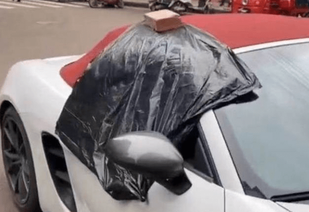 這位男子就遇到了一位非常好的「鄰居」,讓他的保時捷免受了被雨水浸泡的危害
