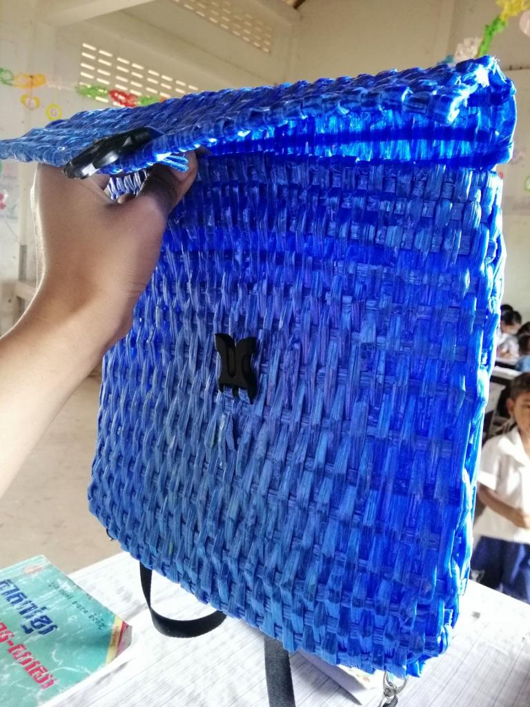 這個書包是爸爸從零開始,一格一格細心的編織而成,從既堅固又整齊的外觀可以看出爸爸花了非常大的心力在上面,雖然上面並沒有甚麼特殊的裝飾,但是卻比市面上賣的花俏書包還要更引人注意!