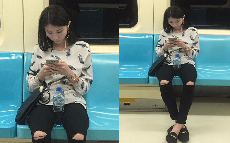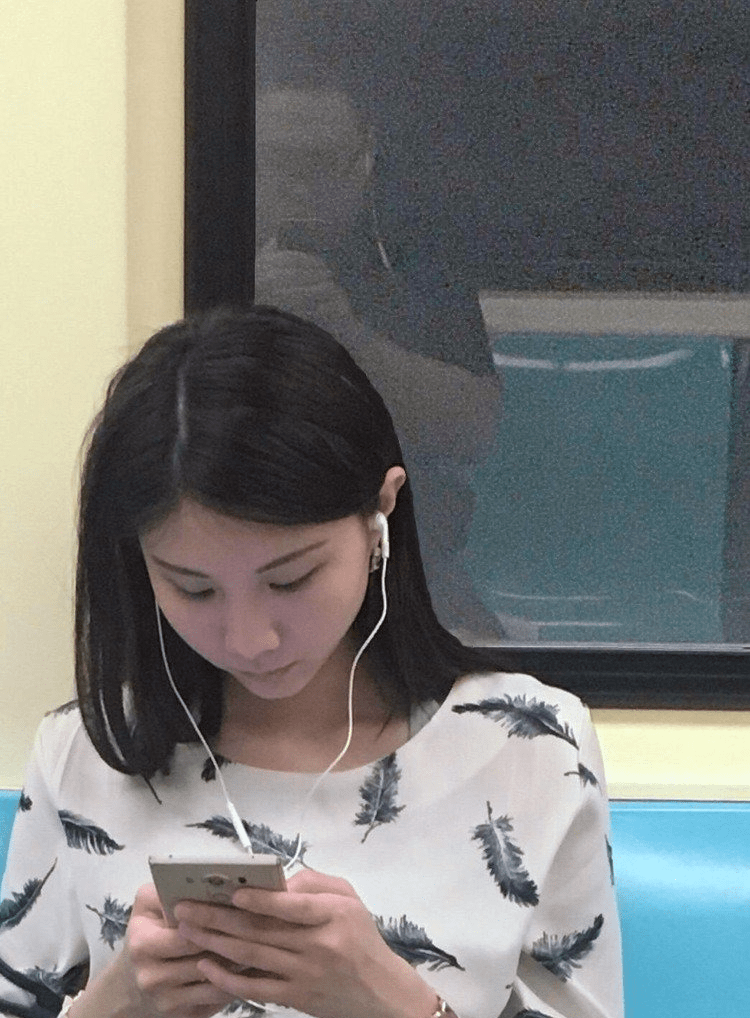 在迴龍捷運站搭車,對面有個超知性性感美女