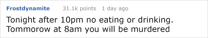 「今晚10點後不要吃喝,明早8點你會GG。」