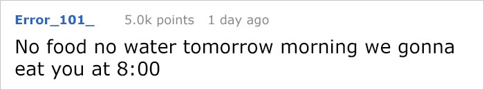 「沒有食物也沒有水,我們會在明早8點把你吃掉。」