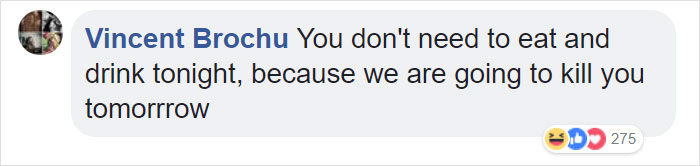 「今晚你不需要吃喝,因為明早我們要宰了你。」