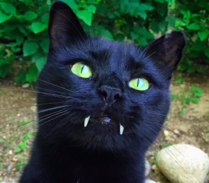 這隻小黑貓名叫Monku,長著一身漆黑髮亮的皮毛,搭配一雙綠悠悠如同綠寶石般的眼睛,更難得的是,它還長了一對又尖又長的牙齒,像極了傳說中的吸血鬼。所以已經曬照,便爆紅網絡。
