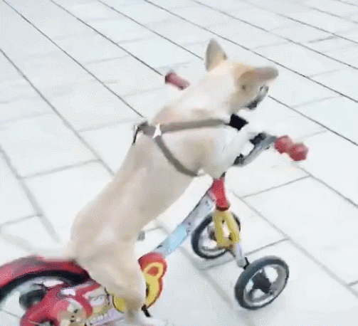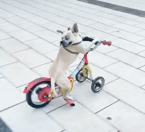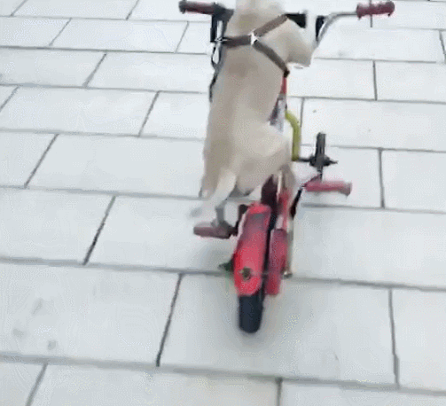 很多狗狗開車的時候,都不懂得踩,但是一些訓練到位的狗狗,它開自行車的時候還會轉彎等等的,感覺已經超出了對狗狗開車的認知,都不知道怎麼訓練的了。