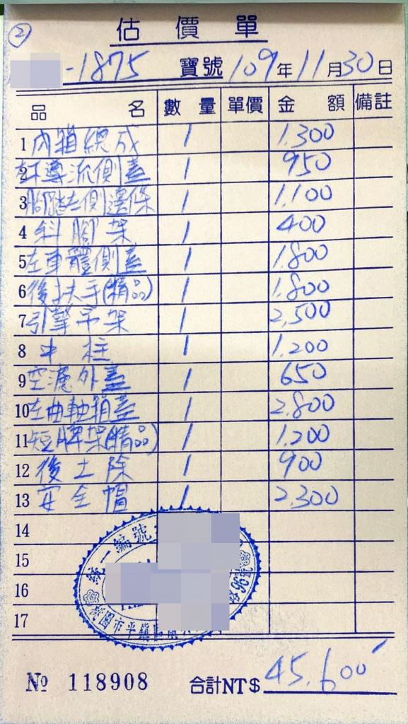 網友在臉書社團上po出幾張估價單,想詢問大家是否合理?!
