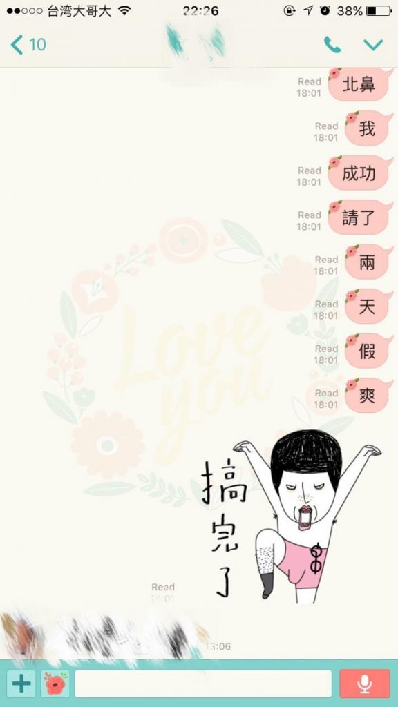 結果傳到他的老師 老師還問為什麼要傳這些字 超尷尬😂」