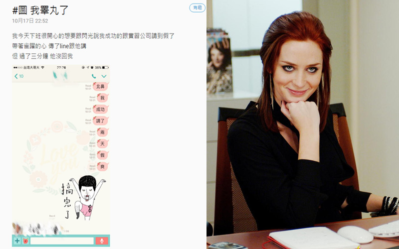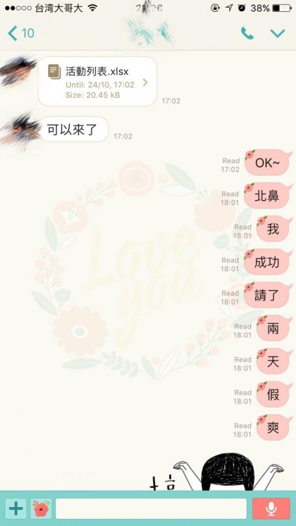 我今天下班很開心的想要跟閃光說我成功的跟實習公司請到假了
