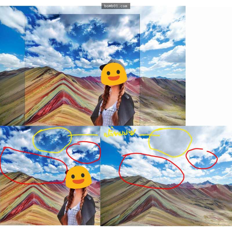 對比原照片雲的流向,就可以看出緹卡是擷取原圖一部份,再拿來P成自己的照片。