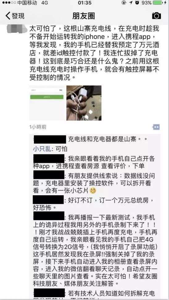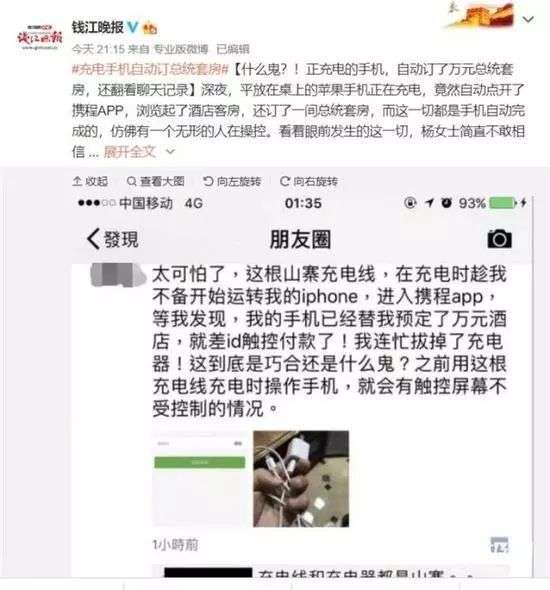 驚慌中的楊女士立刻拔下充電器。立刻報警。警方表示這樣可遠程操控的「山寨充電器」也是第一次遇上,其中可能被植入了晶片或者木馬病毒。