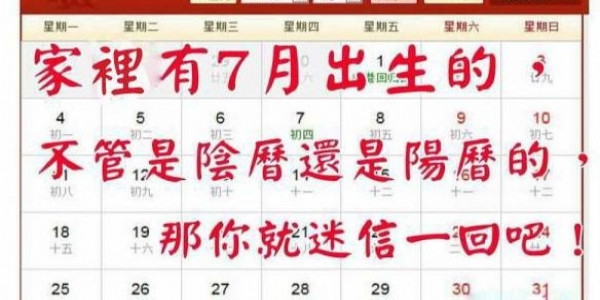家裡有7月出生的,不管是陰曆還是陽曆的,只要是在7月份的那你就迷信一回吧,家裡如果有7月生日的,趕緊發出去,因為今年是百年不遇的紅7月!!!大紅大紫呦!!!