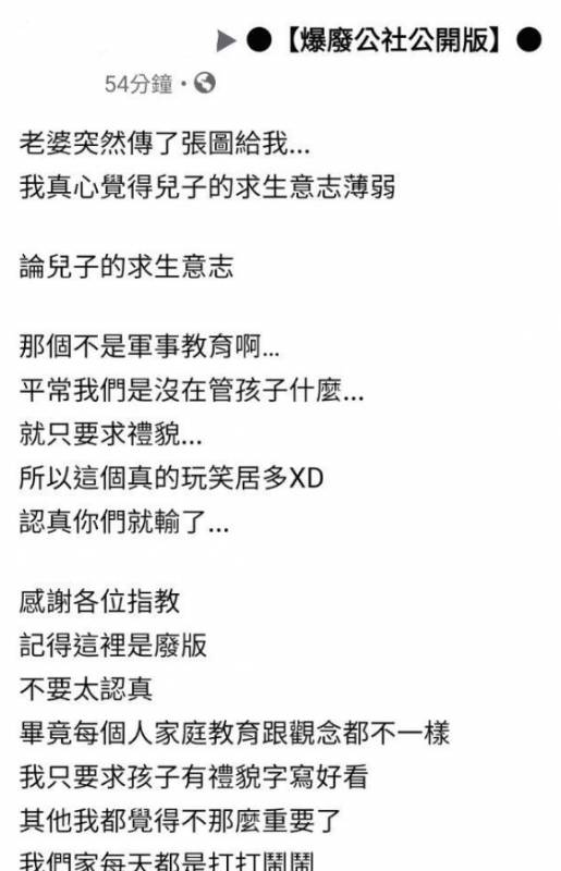 原PO在文中寫著「老婆突然傳了張圖給我……我真心覺得兒子的求 生 意 志 薄 弱」,並附上一張對話紀錄。從照片中的內容可以看到,不管原PO老婆對兒子說什麼或交代什麼事情,兒子都只敷衍的回覆一個字「喔」,讓老婆終於忍不住生氣提醒兒子「請說:好的,媽媽」。