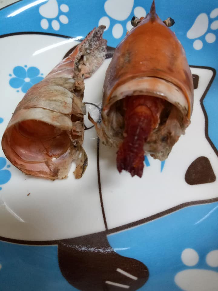 不過,也有內行人出面表示,其實這種蝦又稱「瘦公仔」,特性是體積長到很大後,會因為交配而縮小,但蝦殼卻依舊維持原本的大小,再加上煮過之後可能還會再縮小一點,所以就變成了原PO所看到的樣子了。