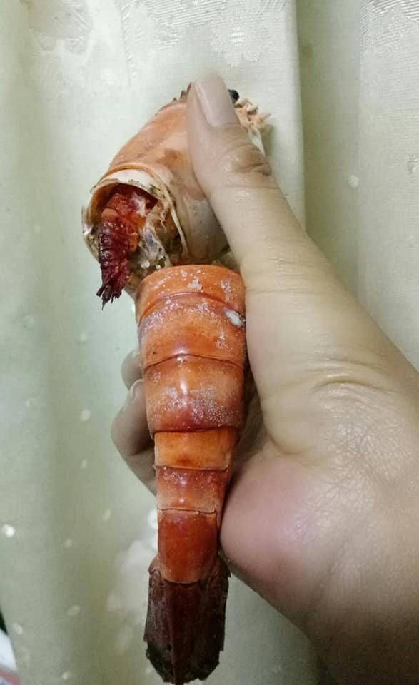 然而,就在她滿心歡喜煮完後,一剝開蝦殼卻當場傻眼了,只見其中一隻比手掌還要大的蝦子,竟然大大縮水,那巨大蝦殼內藏著的,是只有不到一個指節大的蝦肉,讓她失望直呼,「以為買到寶,沒想到遇到詐騙蝦!」另外她補充說,這些蝦子都是老闆幫忙撈的,而對方還拍胸保證絕對新鮮,因此不讓她自己挑,沒想到卻會遇到這種情形。