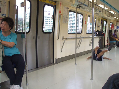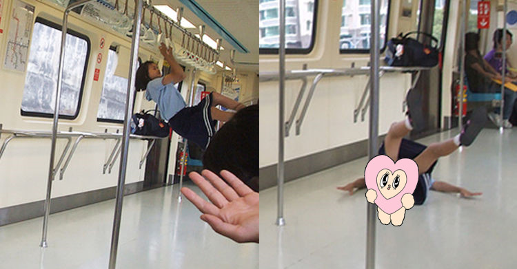最近一名女學生在「爆廢公社公開版」爆紅!在車廂不好好站著,竟用手拉著捷運內的握把用力跳起,讓雙腳騰空,一秒變成女泰山在空中盪!