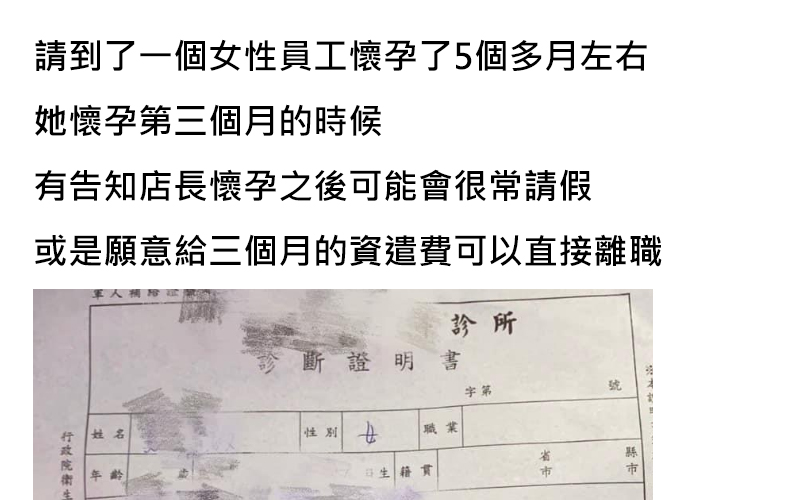 她懷孕第三個月的時候,有告知店長,懷孕之後可能會很常請假,