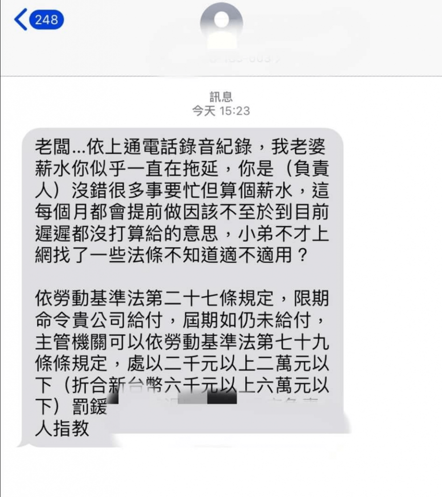 結果回去的時候,她男友傳了簡訊,說我們現在是不給薪水嗎?(上面對話都有錄音)