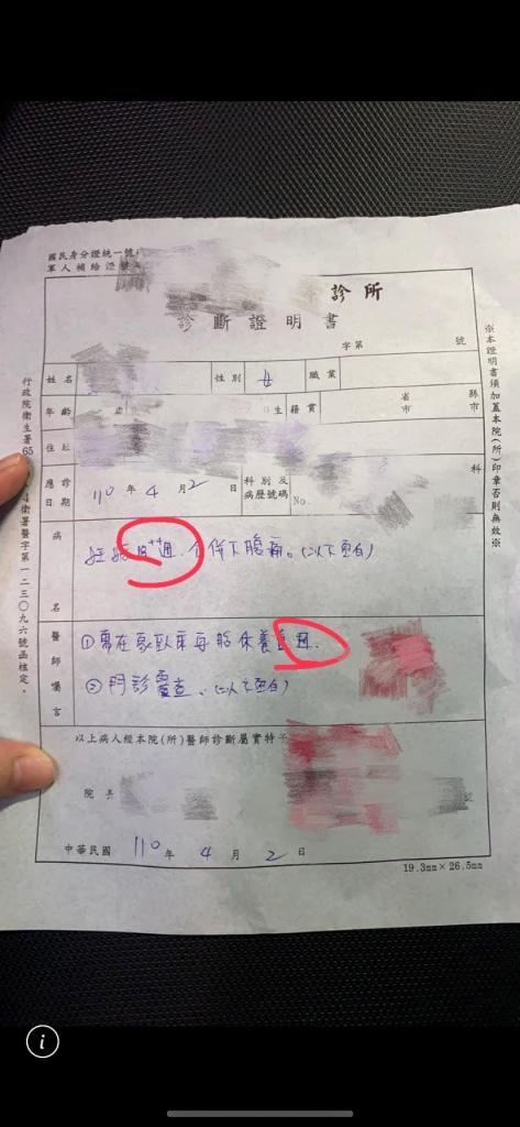 「ps因為我目前也懷孕,胎氣不穩有出血狀況,所以都是請我老公在幫我負責,也被他們質疑我老公不是負責人,要求我出面」