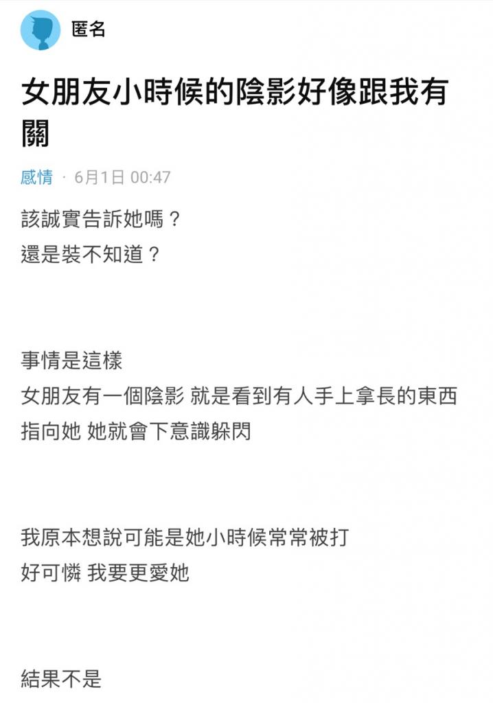 女友小時候的陰影跟我有關…該誠實告訴她嗎?
