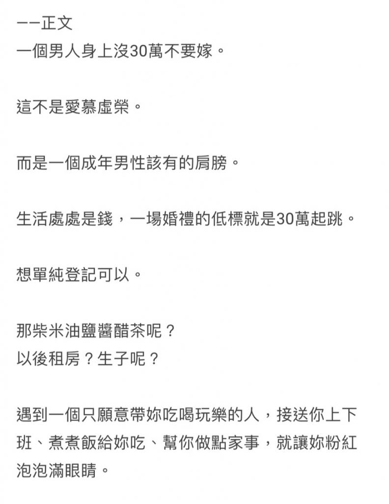 連30萬都沒有的男人不要嫁。