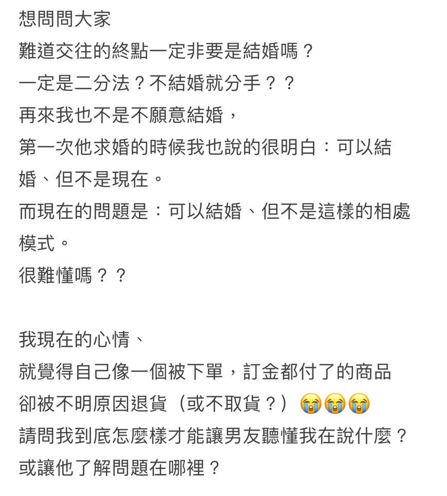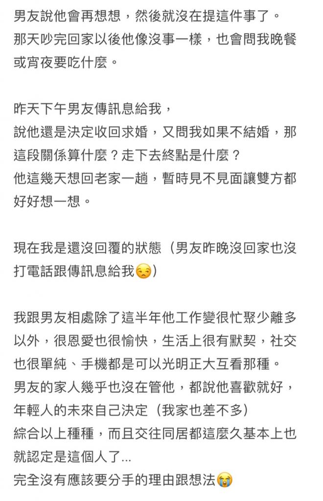 交往7年、同居4年,男友卻說要收回求婚…是什麼意思?