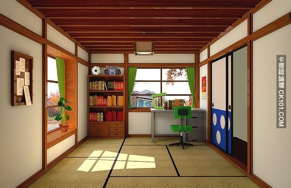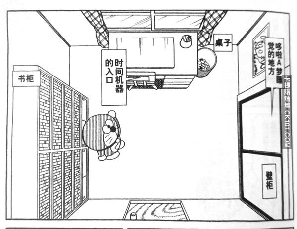 下圖是《哆啦 A 夢》漫畫中大雄房間的普遍樣式(俯瞰圖)
