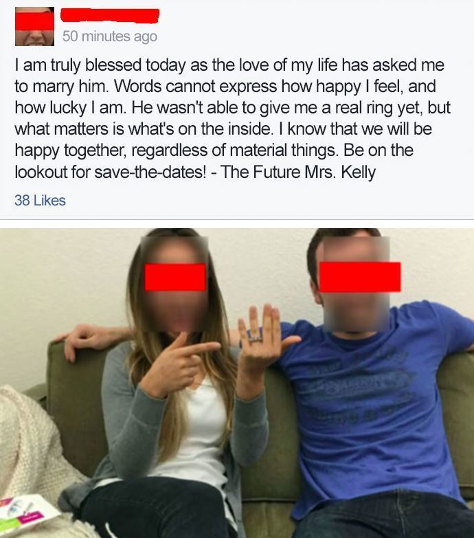 隨著社群網路發達,隨便可以看到一堆情侶放閃,真是讓單身的人感到很孤單啊。不過國外一對情侶開心在臉書公布訂婚的消息,一堆網友看完卻笑了。