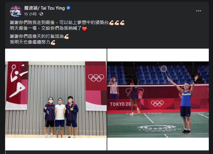 小戴昨日也在在臉書發文,「謝謝你們陪我走到最後,可以站上夢想中的頒獎台,最後一場交給你們為我吶喊了,謝謝你們這幾天的加油打氣,我會繼續努力。」相信這結果一定對的起她付出的努力。